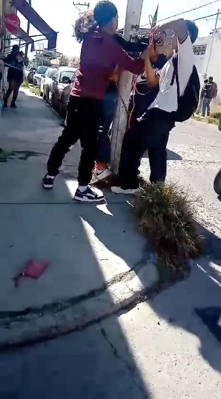 Atan a un poste a presunta ladrona en Atlixco