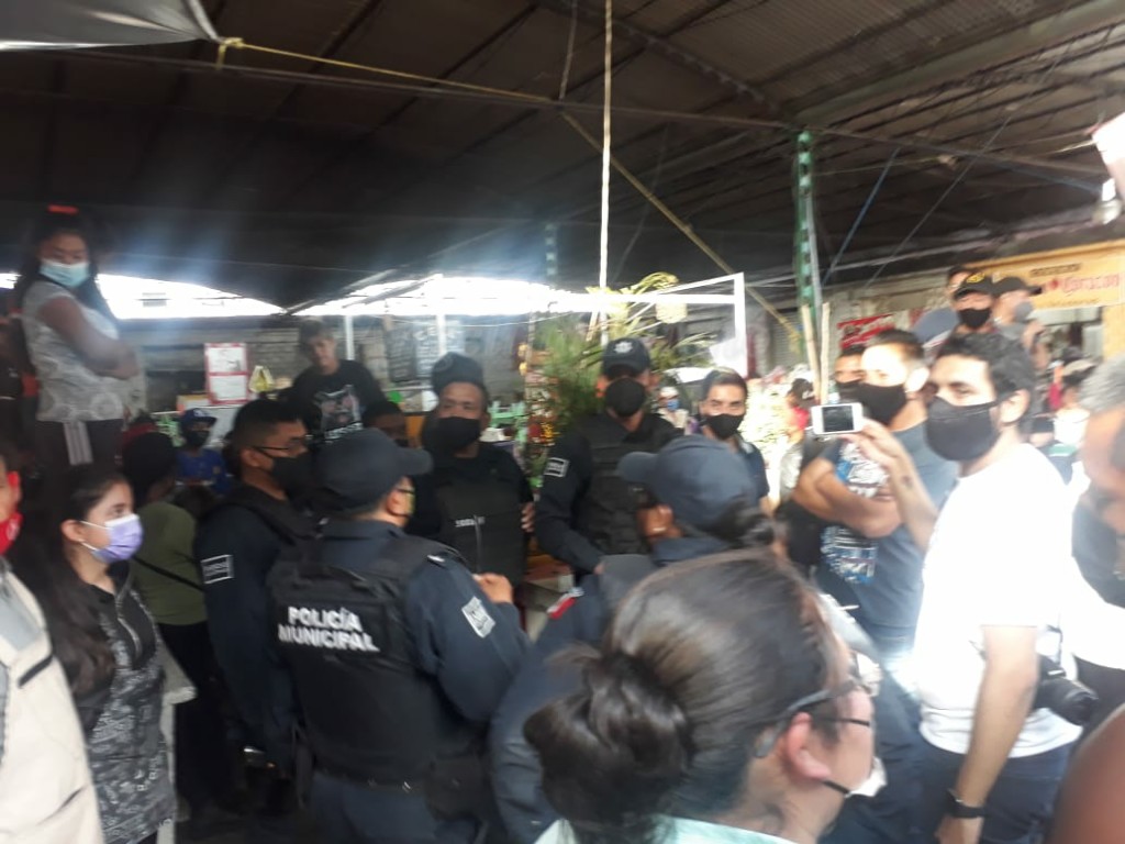Además, solicitaban se les entregará uno de los inspectores de comercio que se encontraba escondido bajo cobijas en uno de los puestos dentro del mercado Ignacio Zaragoza, ante esta amenaza la policía municipal se hizo presente para resguardar el lugar. Fue entonces cuando aceptaron formar una comisión para dialogar con la autoridad municipal.