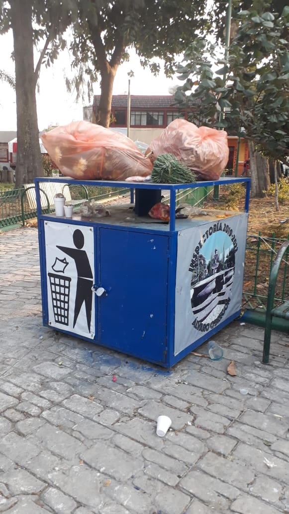 Este martes tianguistas y comerciantes establecidos generaron y dejaron basura en sitios no permitidos tras finalizar sus actividades. Por ello los vecinos denunciaron el abandono de bolsas de desechos en contenedores colocados para otro fin y en el parque de La Rotonda donde pactaron no trabajar.