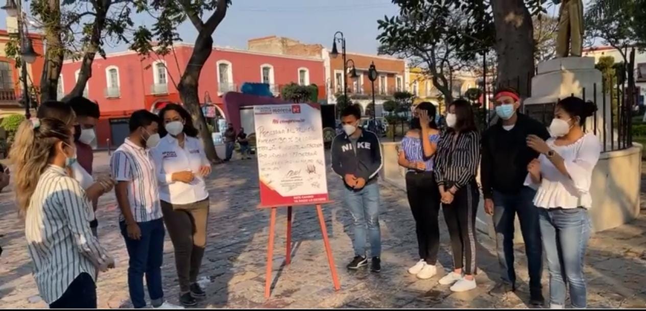Atlixco. A fin de generar una real inclusión en materia laboral y porque los jóvenes son el presente de México, hoy en el monumento a Benito Juárez, lugar emblemático de reunión de la juventud, la candidata por Morena y PT a la alcaldía del municipio de Atlixco, firmó su segundo compromiso enfocado a los jóvenes de Atlixco, por medio de los programas “Tu primer empleo” y “Jóvenes con un mejor futuro”.