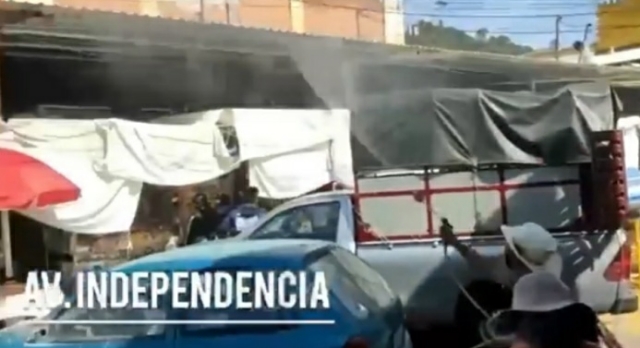 La primera acción realizada fue este fin de semana en calles como avenida Independencia, zócalo y zonas de mayor concentración de gente. Se sanitizaron las calles, se entregaron cubrebocas a los ciudadanos.