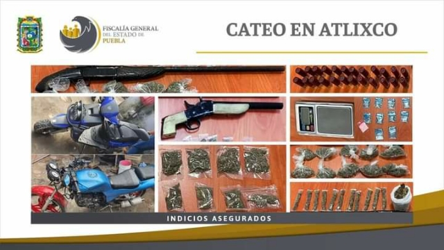 Atlixco. La Fiscalía General del Estado de Puebla a través de agentes investigadores llevó a cabo el cateo de un inmueble en el municipio de Atlixco donde aseguró más de 40 dosis de droga y motocicletas presuntamente robadas.