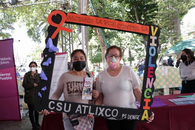 En el marco del Día Internacional contra la Violencia de Género y con el propósito de sumar esfuerzo en favor de la prevención, atención, sanción y erradicación de la violencia contra las mujeres, el Ayuntamiento de Atlixco en coordinación con el Gobierno del Estado llevó a cabo la Feria Informativa "Hacia una sociedad libre de violencia".