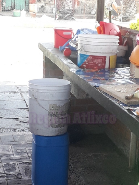 Atlixco. El llamado mercadito de sabores del barrio Smart, antigua estación del ferrocarril, lleva un año sin agua potable denunciaron los vendedores de comida que se instalan por las mañanas. Ambos puestos tienen la necesidad de acarrear en cubetas el líquido para mantener la limpieza.