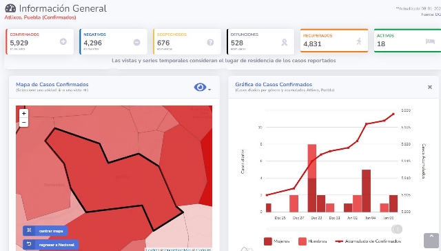 Al día de hoy, 11 de enero, el tablero Conacyt de la página oficial del Gobierno de México indica que en este municipio existen 18 personas activas contagiadas de Sars-cov2.
