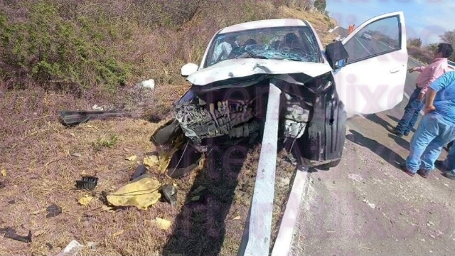 Atzitzihuacan. Aparatoso accidente se registró cerca de las 16 horas en la autopista siglo XXI en el kilómetro 35, donde el conductor de un vehículo resulto lesionado al estamparse contra la barra metálica de contención.
