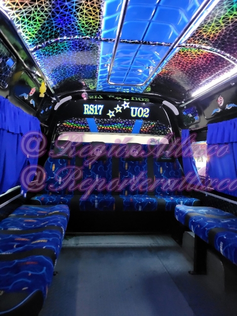 Y es que las luces neón, las cortinas azules para impedir la entrada de luz por las ventanas, los cabezales de los asientos con bordados personalizados hacen que parezca que se entra a otro mundo, por ellos los comentarios al respecto en la mayoría de la s veces son en el sentido de bromas.