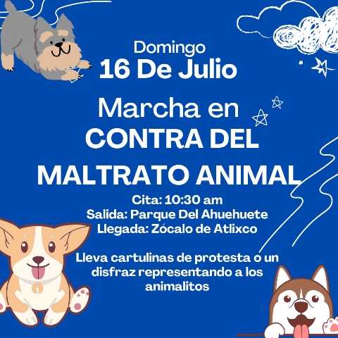 Atlixco. Los animalistas atlixquenses convocan a la primera marcha en pro de las mascotas, dado los últimos acontecimientos de maltrato animal que se han hecho virales a nivel nacional, como el de Blanquita y Muñeca.