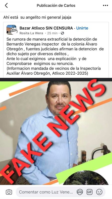 Ante la difamación en grupos de redes sociales, la Asociación de Vecinos de la Colonia Álvaro Obregón, Atlixco emitió un comunicado para advertir de que se trataba de una fake News ya que no proviene de ninguna fuente oficial y por el contrario se trata de una difamación que intenta afectar la figura de autoridad en la colonia donde se instala el tianguis regional.