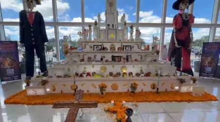 Altar de papel de Tochimilco llegó al aeropuerto de Huejotzingo