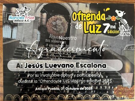 Y para reforzar su dicho, publicó el texto junto con la foto de un reconocimiento entregado por parte de dicho grupo por el apoyo otorgado para la realización del altar. Esto después de que el pasado miércoles cuatro de noviembre este grupo emitió un comunicado donde se deslindaron de las acciones de este personaje.