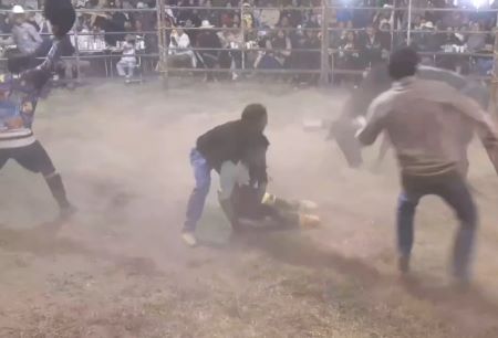 Fue mediante un video que se dio a conocer esta situación que casi les cuesta la vida, en las imágenes se ve que el jinete apodado "El Cachorro Jr" monta al toro, pero en un momento dado pierde el control y cae, el animal los golpea con la cabeza, lo zarandea, lo tira de nuevo al piso y es cuando se ve a otro masculino entrar al ruedo.