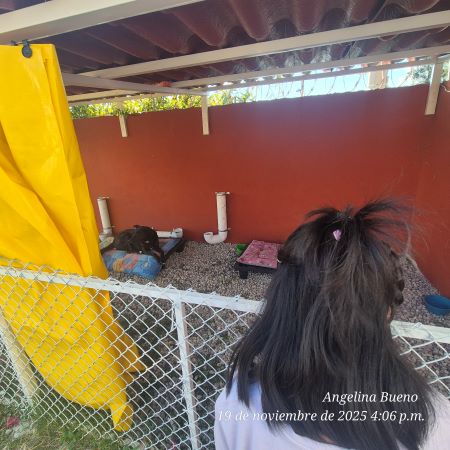“Hay muchos perritos que son de la calle y a mi fraccionamiento llegaron Chuky y Kairina y yo sentía feo de verlos cuando había mucha lluvia, ellos tenían que irse a las escaleras para que no se mojaran, cuando había mucho calor tenían que ir a buscar una sombra para no les diera el calor, yo decidí comprarles con mis ahorros una casita, pero como no iban a caber en un casita con ayuda de mi abuelo y unos buenos vecinos les dije que si me ayudaban a comprarle una casita, así que en equipo y con amor a los perritos lo logramos a hacerles el refugio”, relató la pequeña.