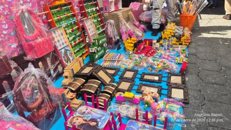 Ella y tres mujeres más se encargaron de acomodar no sólo los juguetes, también sillas para jardín en el pequeño espacio para que pudieran tener donde dormir. Será a partir de este dos de enero que diariamente colocaran sus productos sobre la calle 5 oriente, como tradicionalmente lo hacen año con año.