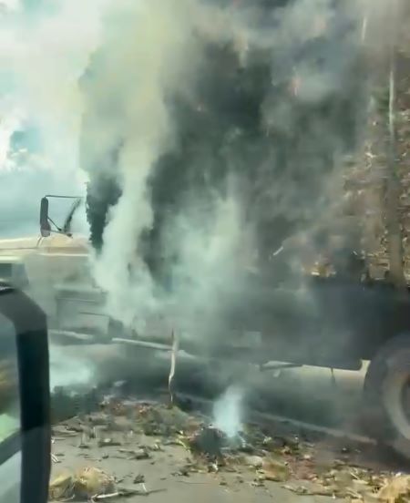 El camión que presuntamente presentó falla mecánica y viajaban con sentido a Atlixco cuando empezó el fuego, por lo que el conductor se orilló pero al hacerlo, las pacas se desprendieron y cayeron sobre el pastizal lo que generó más las llamas.