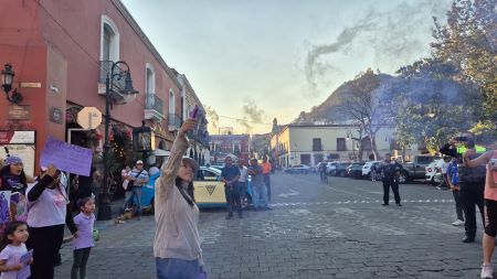 Terminan su recorrido en la plaza de armas de la ciudad en donde cantan, colocan sus pancartas y recuerdan a todas aquellas atlixquenses que han muerto en manos de feminicidas, así como a las que aún no aparecen como es el caso de Nicora Madelen.