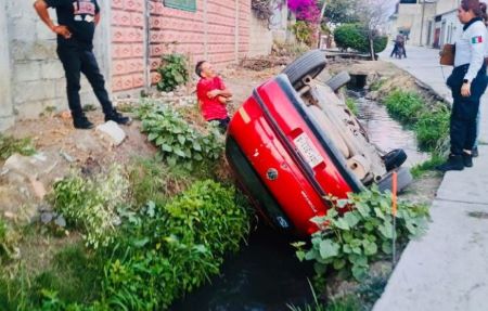 Auto cae en canal de agua en Tepeojuma