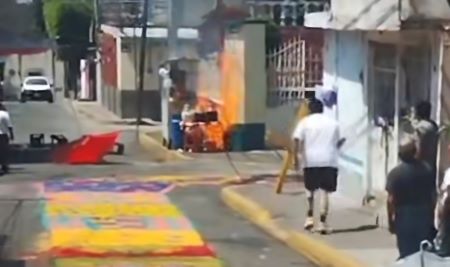 Momentos de tensión vivieron participantes y espectadores de la procesión de Viernes Santo en la voluntad Álvaro Obregón a la altura de la iglesia de la colonia San José Cuauhtémoc, cuando el tanque de gas de un puesto de comida en la vía pública se envolvió en llamas.