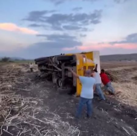 Tepeojuma. La errónea práctica de sobre carga o camiones que sacan la cosecha de la caña provocó una vez más que la unidad se volteara sobre uno de los costados quedando tirado en campos de la comunidad de Teruel.